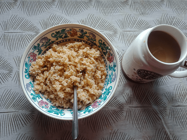 Fry rice is the common food that every Bhutanese’s eats during breakfast and it is easy to make. To make the taste better Bhutanese makes a side dish to go along the food which is known as “ezay” which it made up of few vegetables.